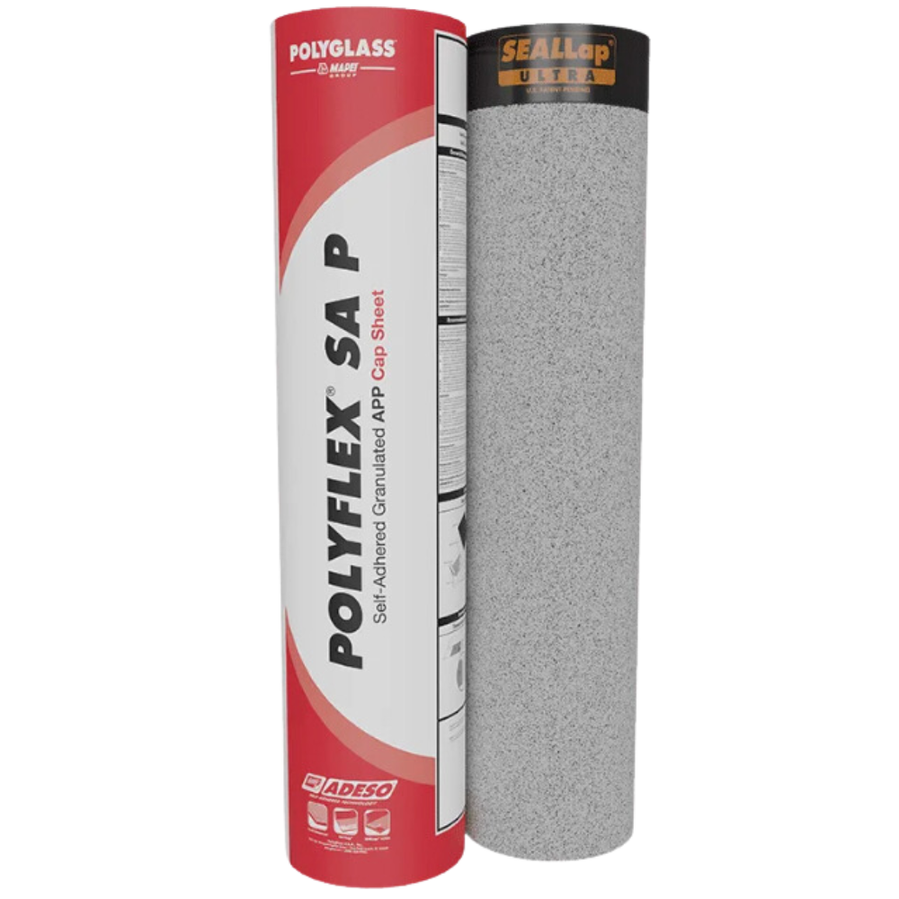 | Description | Polyflex SA P is a self-adhered APP granulated cap sheet for use in low-slope roofing. Polyflex SA P is manufactured using Polyglass’ patented Adeso Self-Adhered Dual-Compound Technology. |