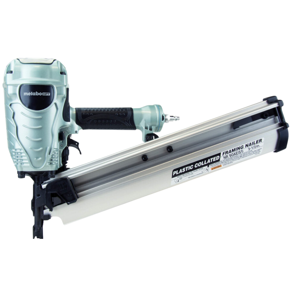 | Description | This 21 Degree Plastic Collated Framing Nailer (NR90AES1) drives plastic collated nails from 2" up to 3-1/2" in length and features Metabo HPT's next generation "industrial design." Weighing only 7.5 lbs, it is easy to use all day, while still providing the power as other bulkier and heavier framing nailers. |