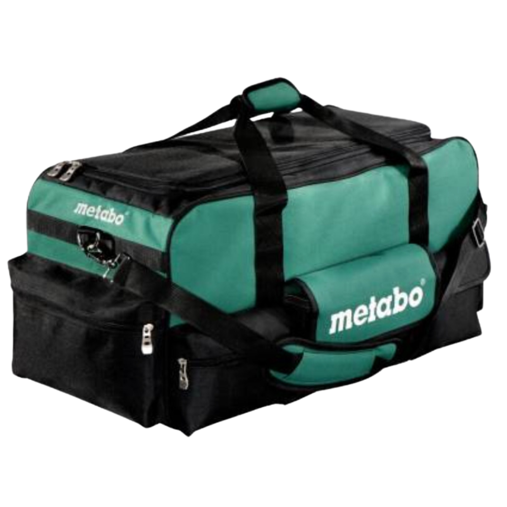 | Description | The spacious and functional Metabo tool bag features five internal compartments equipped with hook and loop straps for organizing battery packs, chargers, and accessories, complemented by two large zippered pockets and three smaller exterior pockets for easy access, all designed for comfort with side pads and a padded shoulder strap. |