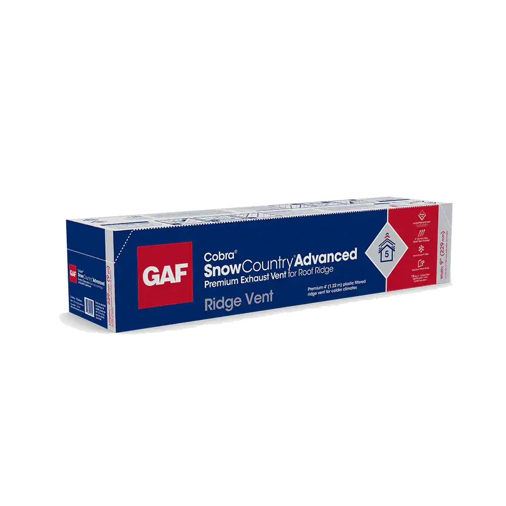 | Description | Cobra SnowCountry Advanced Exhaust Vent for Roof Ridge allows heat and moisture to escape at the ridge while helping to prevent snow infiltration in harsh winter climates. It provides 18 sq. inches per linear foot of net free ventilating area and its unique EasyTear Sizing feature allows you to hand-tear product in 3" (76 mm) increments — no knives necessary and less waste. |